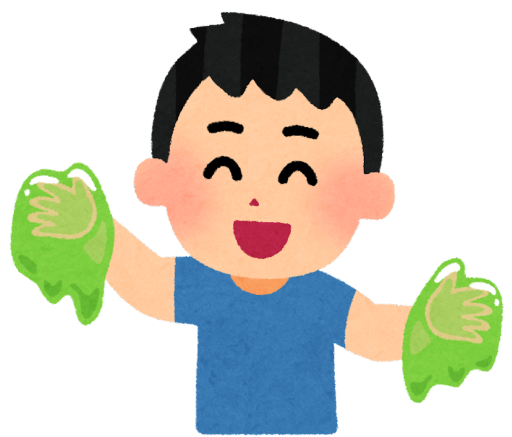 出来上がったスライムで感触を楽しんだり、 移し替えやスライム風船など道具を使っても遊びを広げていきたいです。