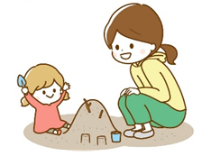 児童館の砂場を使って遊びます。砂の感触を楽しみながら、